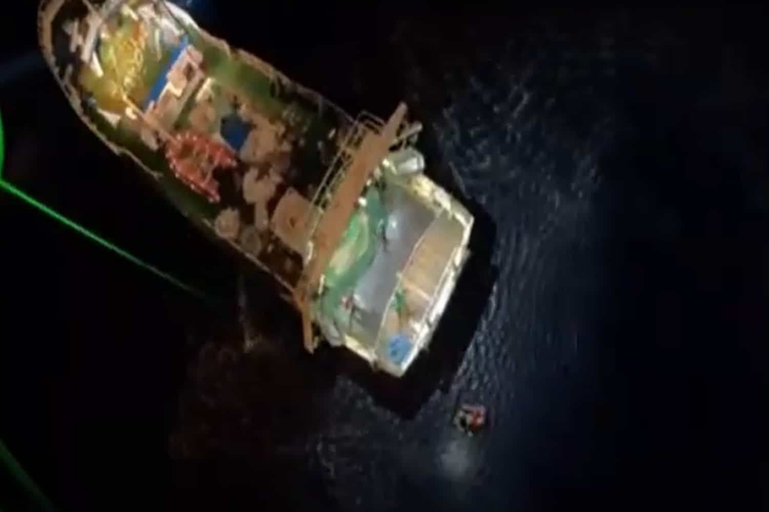 Στο βίντεο που έδωσε στη δημοσιότητα η Πολεμική Αεροπορία φαίνεται ο διασώστης να κατεβαίνει με σκοινί στο αλιευτικό «Eros B», το οποίο έπλεε 5 ναυτικά μίλια βόρεια της Αστυπάλαιας.
