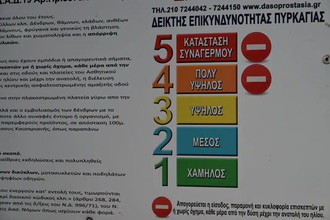 Αύριο, η περιφέρεια Αττικής, Περιφέρεια Στερεάς Ελλάδας (Βοιωτία, Εύβοια) και Περιφέρεια Πελοποννήσου (Αργολίδα, Κορινθία, Λακωνία) θα είναι σε Κατάσταση Συναγερμού (κατηγορία κινδύνου 5).