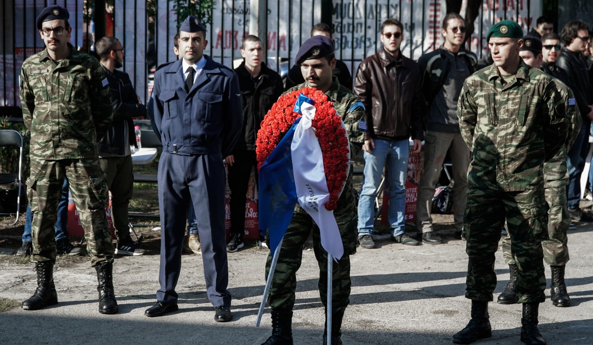 Σήμερα, Τετάρτη 16 Νοεμβρίου, στρατιωτικοί κατέθεσαν στεφάνι για την επέτειο του Πολυτεχνείου.