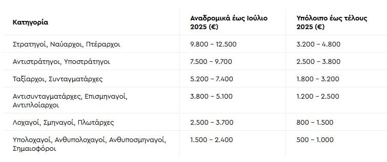 Πότε θα πληρωθούν τα αναδρομικά των αποστράτων 2025 – Αναλυτικά τα ποσά & τα παραδείγματα