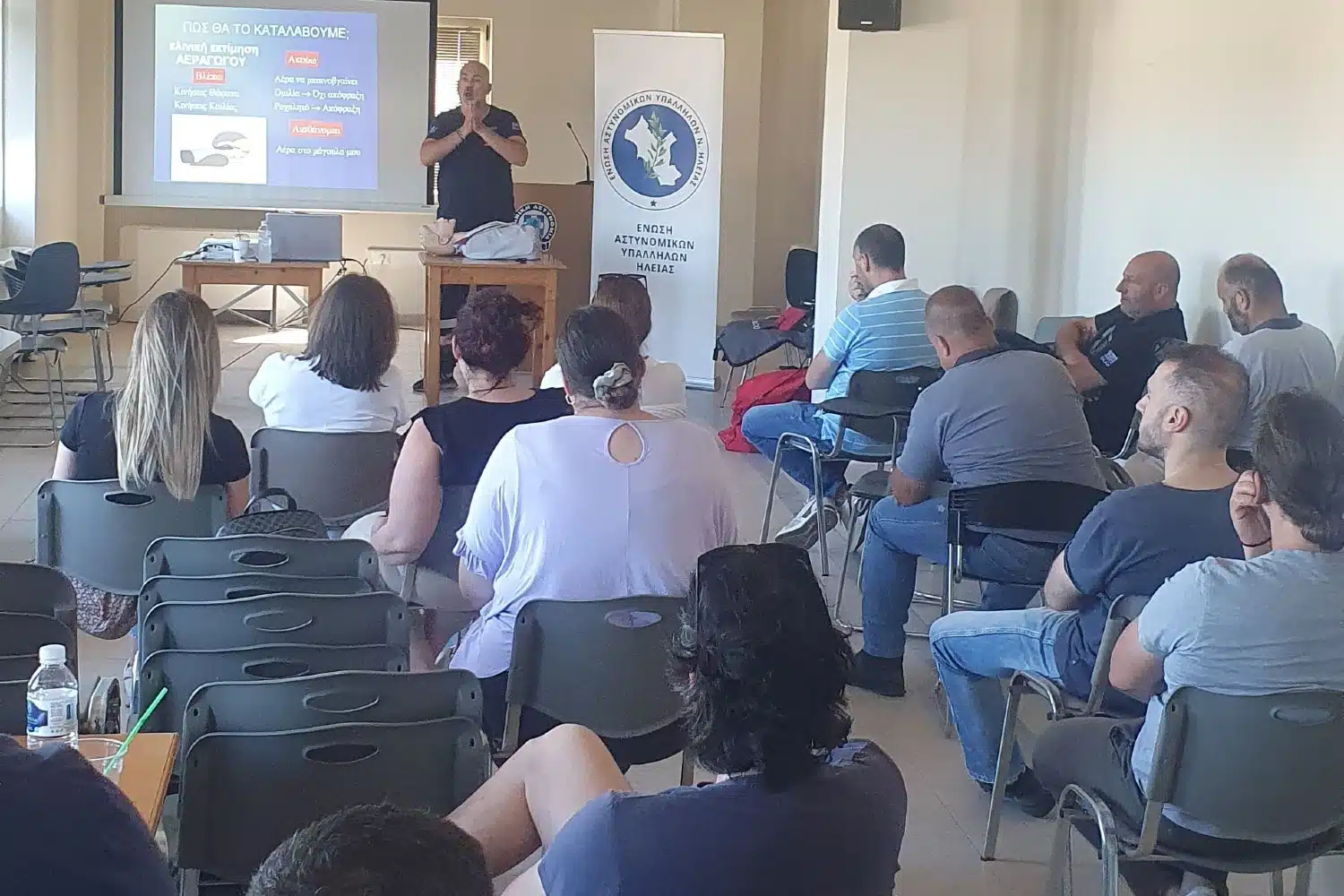Την 15.06.2024 με πρωτοβουλία της Ένωσης Αστυνομικών Υπαλλήλων Ηλείας πραγματοποιήθηκε στο Αστυνομικό Μέγαρο Ηλείας, εκπαιδευτικό σεμινάριο παροχής πρώτων βοηθειών.