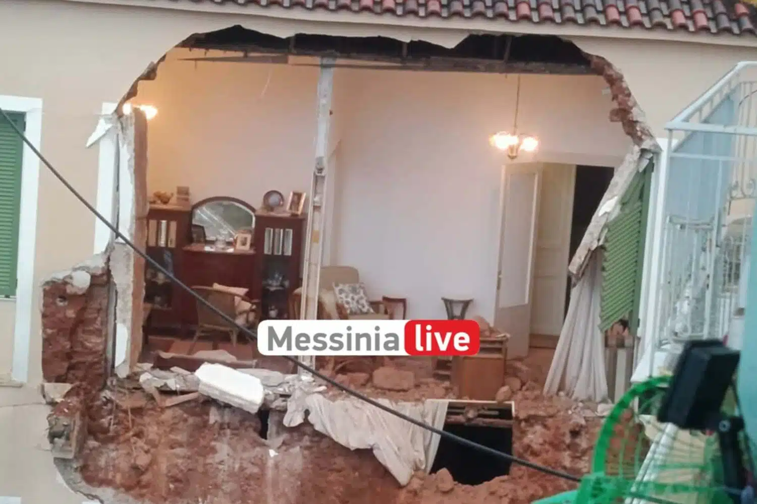 Σοκ προκαλεί η κατάρρευση πρόσοψης σπιτιού στη Μεσσήνη από την κακοκαιρία. Για αδιευκρίνιστο ακόμα λόγο, πιθανόν λόγω των παρατεταμένων βροχοπτώσεων, αποκολλήθηκε το μπαλκόνι του πρώτου ορόφου του σπιτιού και συμπαρέσυρε και τον τοίχο-πρόσοψη αλλά κατέρρευσε και το ταβάνι του πρώτου ορόφου του σπιτιού στην οδό Κολοκοτρώνη στη Μεσσήνη.