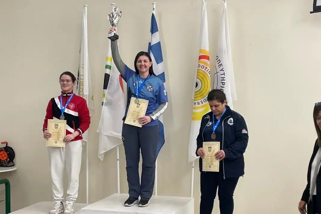 Η σκοπεύτρια Αλεξοπούλου Ευαγγελία της ομάδας της Ελληνικής Αστυνομίας, του Σ.Ο. Σπάρτης και μέλος της Ένωσής μας, πραγματοποιώντας μια εξαιρετική εμφάνιση, αναδείχτηκε πρωταθλήτρια Ελλάδος στο Ολυμπιακό αγώνισμα του αεροβόλου πιστολιού γυναικών που διεξήχθη στις 22/11/2025 στο Εθνικό Σκοπευτήριο Βύρωνα.