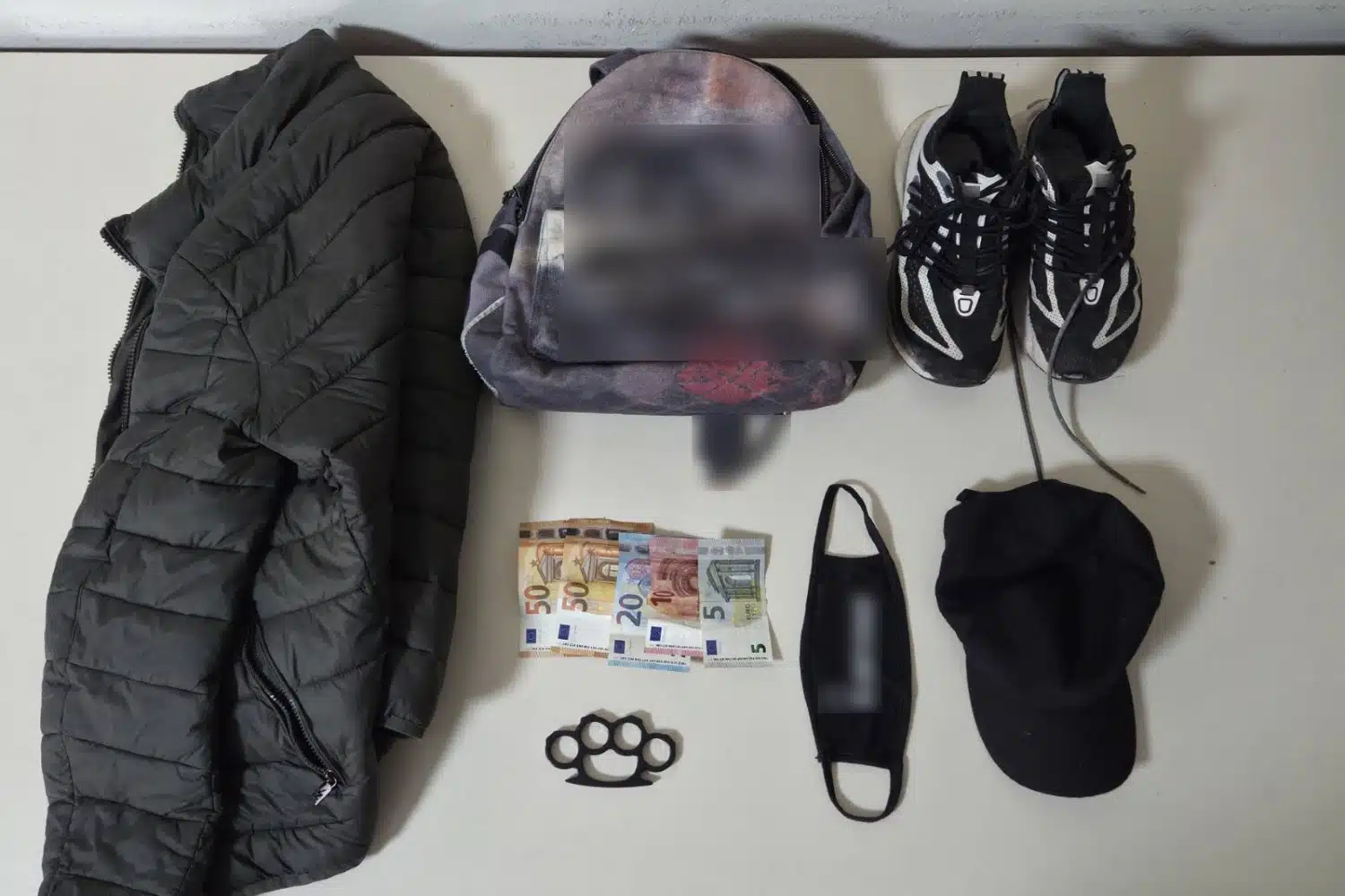 Σε έρευνα που πραγματοποιήθηκε στην οικία του 35χρονου στην Πτολεμαΐδα, καθώς και στην κατοχή του βρέθηκαν συνολικά και κατασχέθηκαν σιδερογροθιά, τα είδη ρουχισμού που φορούσε κατά την τέλεση της κλοπής και το χρηματικό ποσό των 135 ευρώ, το οποίο και αποδόθηκε στην νόμιμη κάτοχό του.