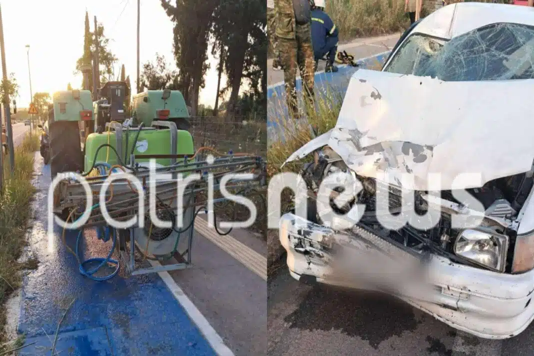 Σύμφωνα με τις πληροφορίες του patrisnews, κάτω από αδιευκρίνιστες συνθήκες, ο οδηγός του λευκού αυτοκινήτου «καρφώθηκε» στο πίσω μέρος του τρακτέρ το οποίο προπορευόταν.