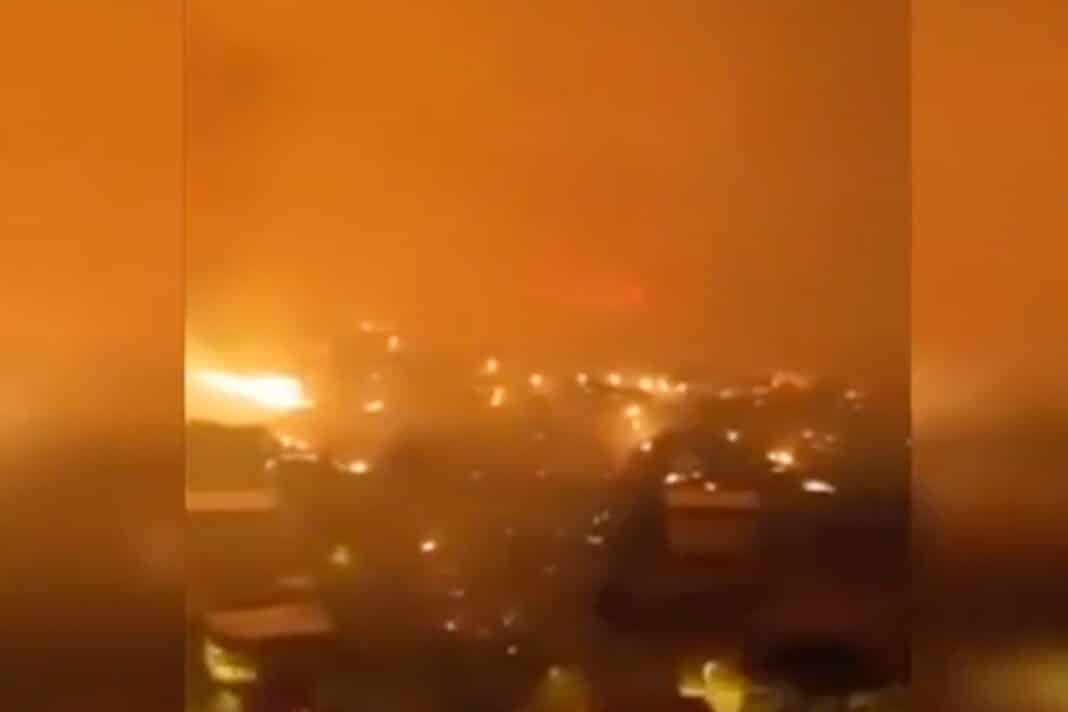 Οι φλόγες, που ξέσπασαν το βράδυ του Σαββάτου στα δασωμένα βουνά γύρω από την πόλη, εξαπλώθηκαν γρήγορα, αναγκάζοντας τις αρχές να απομακρύνουν εκατοντάδες κατοίκους και προκαλώντας τον θάνατο ενός πυροσβέστη.