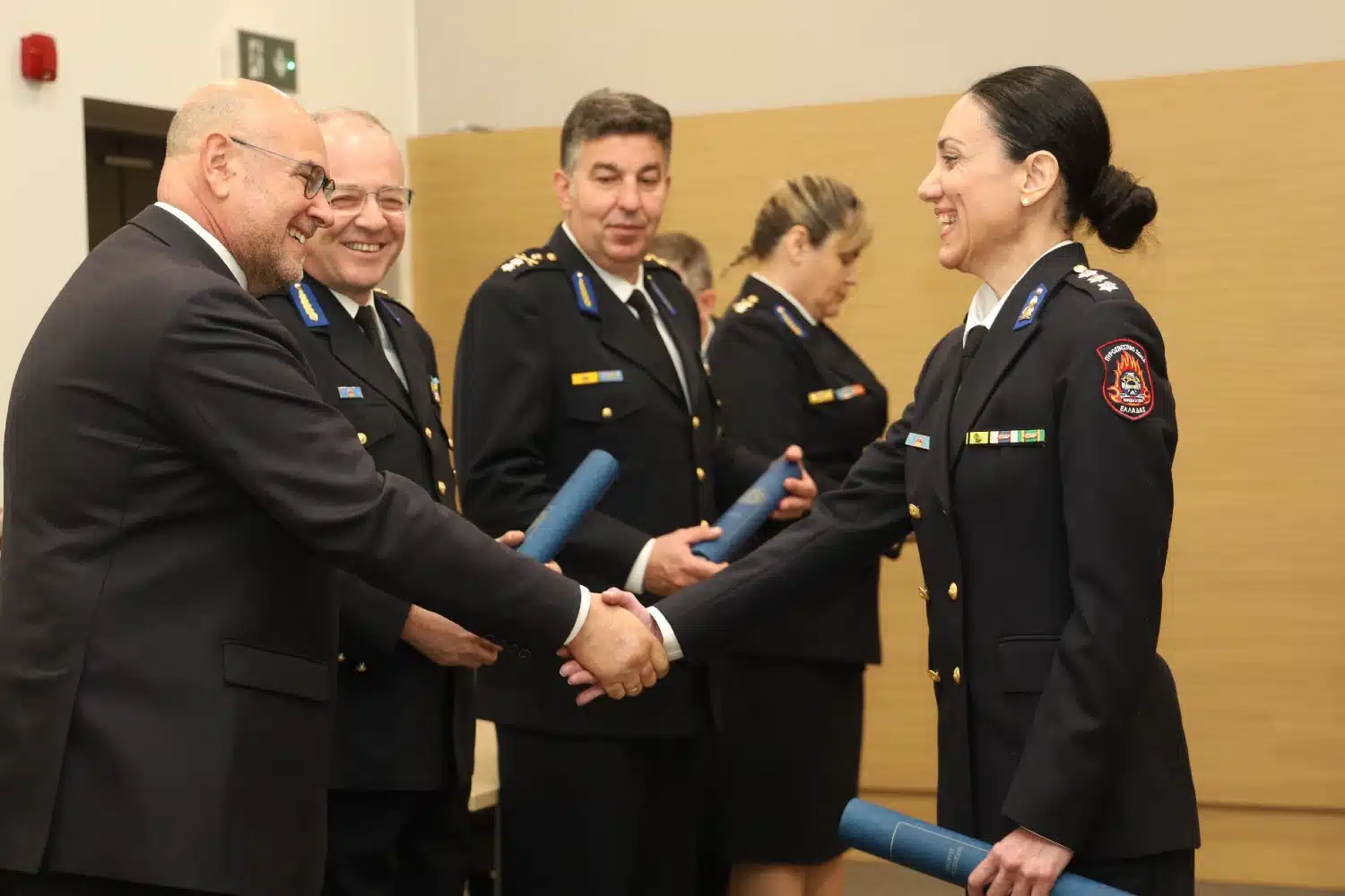 Αξιοποιείστε λοιπόν τις γνώσεις που αποκομίσατε ώστε να εξελίξετε το ακαδημαϊκό, προσωπικό και επαγγελματικό σας επίπεδο. Αλλά ταυτόχρονα επιδιώξτε να μεταλαμπαδεύσετε τη γνώση που αποκομίσατε και στους υφισταμένους σας ώστε, με συνεισφορά όλοι μαζί να προάγετε και να ανυψώσετε το Πυροσβεστικό Σώμα, κατά τρόπο που ανταποκρίνεται πλήρως στα νέα δεδομένα και στις σύγχρονες απαιτήσεις της σύγχρονης διεθνούς πραγματικότητας.