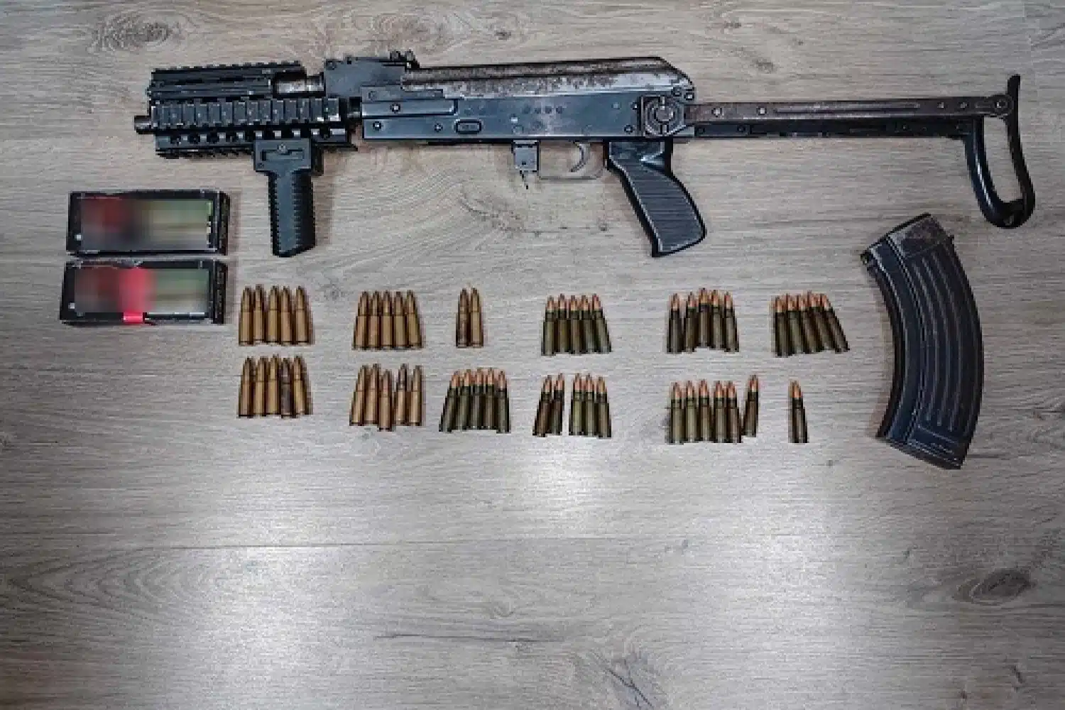 • Ένα πολεμικό τυφέκιο τύπου Kalashnikov με γεμιστήρα