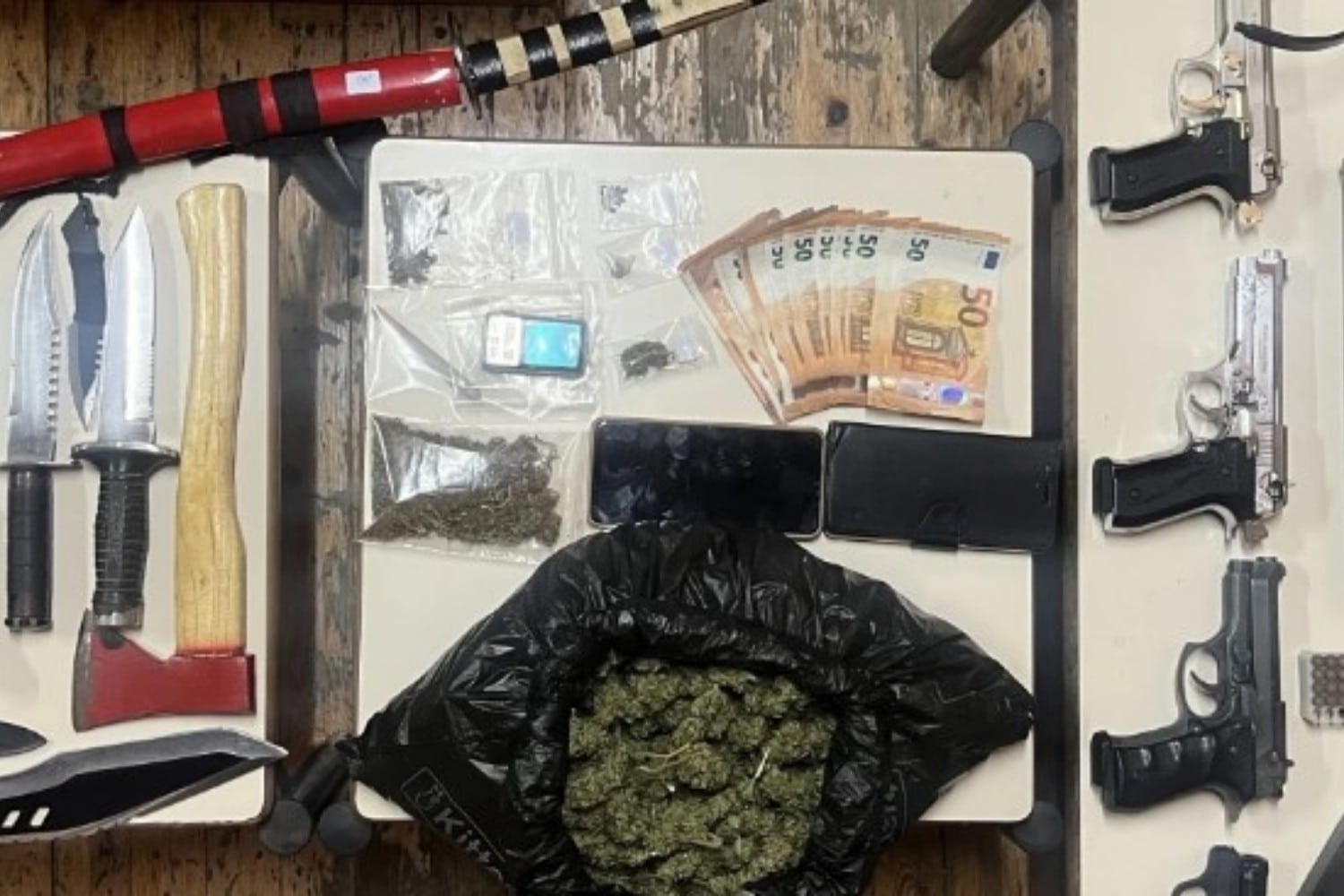 Δύο άνδρες ηλικίας 27 και 33 ετών, που φέρονται να είχαν πλούσια δράση σε ναρκωτικά και όπλα, συνελήφθησαν στο Ρέθυμνο, αφού εντοπίστηκαν σε Ι.Χ. με σχεδόν μισό κιλό κάνναβης, πέντε όπλα, φυσίγγια, μαχαίρια και 1.550 ευρώ.