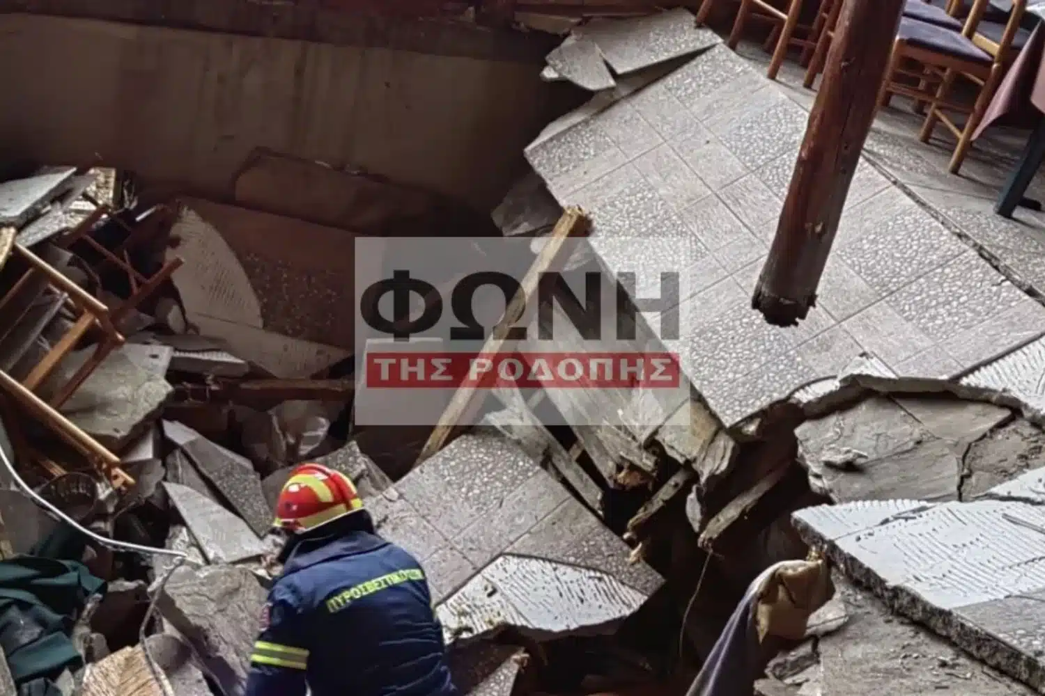 Αναστάτωση προκλήθηκε το μεσημέρι του Σαββάτου (21/2) σε ταβέρνα στη Ροδόπη, καθώς μέρος του δαπέδου υποχώρησε αιφνιδίως, ρίχνοντας στο κενό πελάτες που κάθονταν σε τέσσερα τραπέζια.
