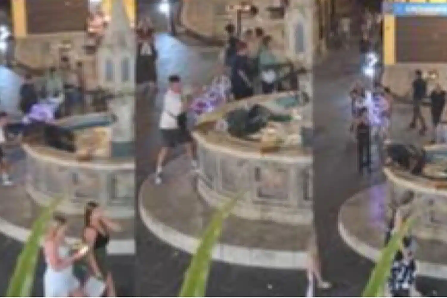 Το υλικό, που κάνει τον γύρο του διαδικτύου, δείχνει τον νεαρό να πλησιάζει τον ανυποψίαστο άνδρα, να τον ρίχνει στο νερό και αμέσως μετά να απομακρύνεται τρέχοντας από το σημείο.