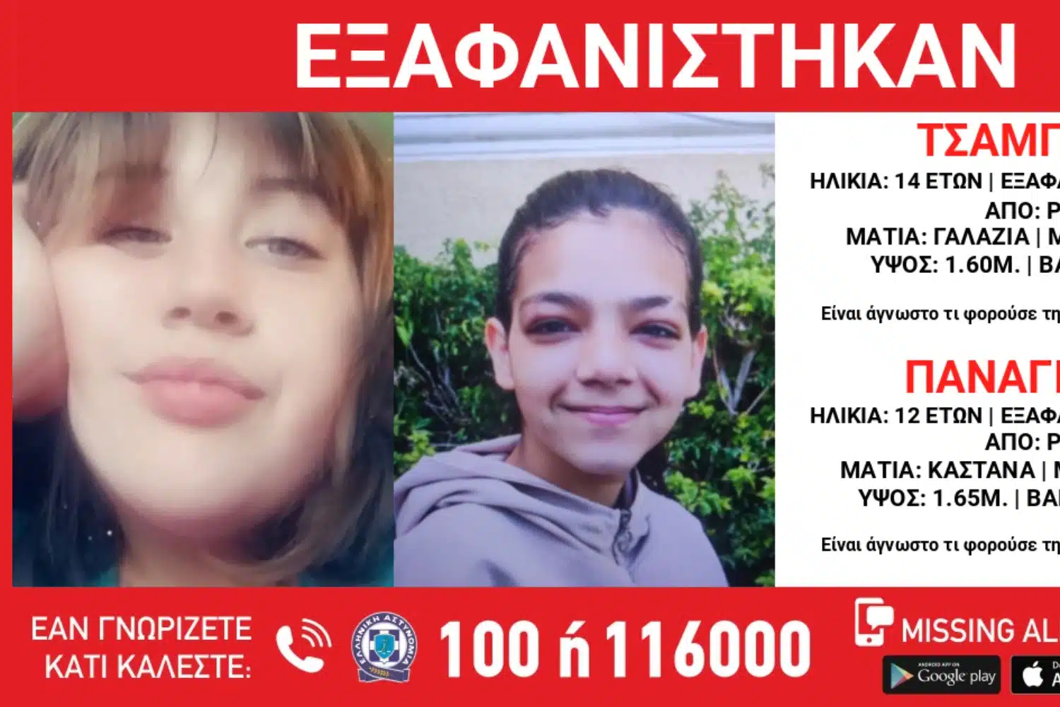 Τα ίχνη της 14χρονης Τσαμπίκα Ο. και της Παναγιώτας Κ. 12 ετών χάθηκαν στις 21:00 το βράδυ της Δευτέρας.