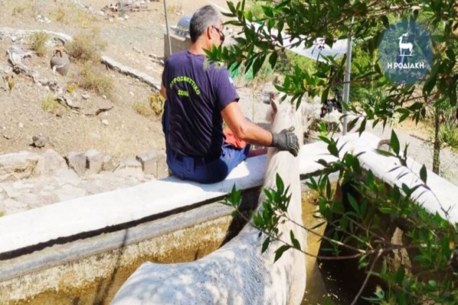 Επιχείρηση απεγκλωβισμού αλόγου που είχε πέσει σε στέρνα με νερό, κοντά στο χωριό Λάερμα της Ρόδου, πραγματοποιήθηκε χθες, Παρασκευή, από πυροσβέστες της τοπικής Πυροσβεστικής Υπηρεσίας.