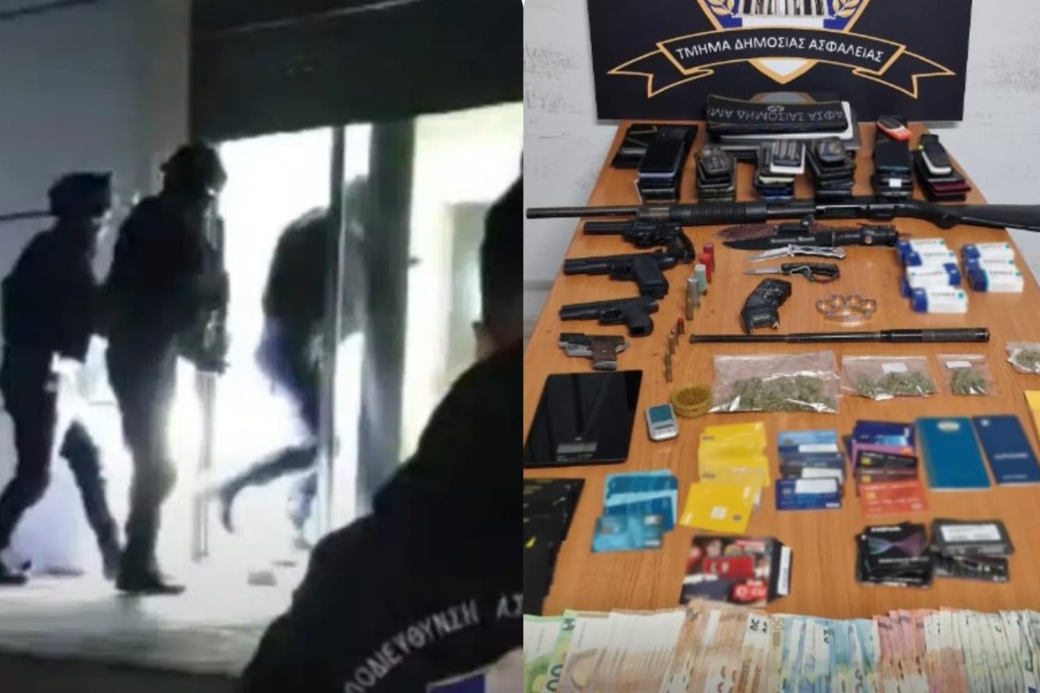 Κατά την διάρκεια των επιχειρήσεων στα σπίτια των μελών της σπείρας, οι αστυνομικοί εντόπισαν, χιλιάδες ευρώ, όπλα, ναρκωτικά και δεκάδες συσκευές κινητών τηλεφώνων.