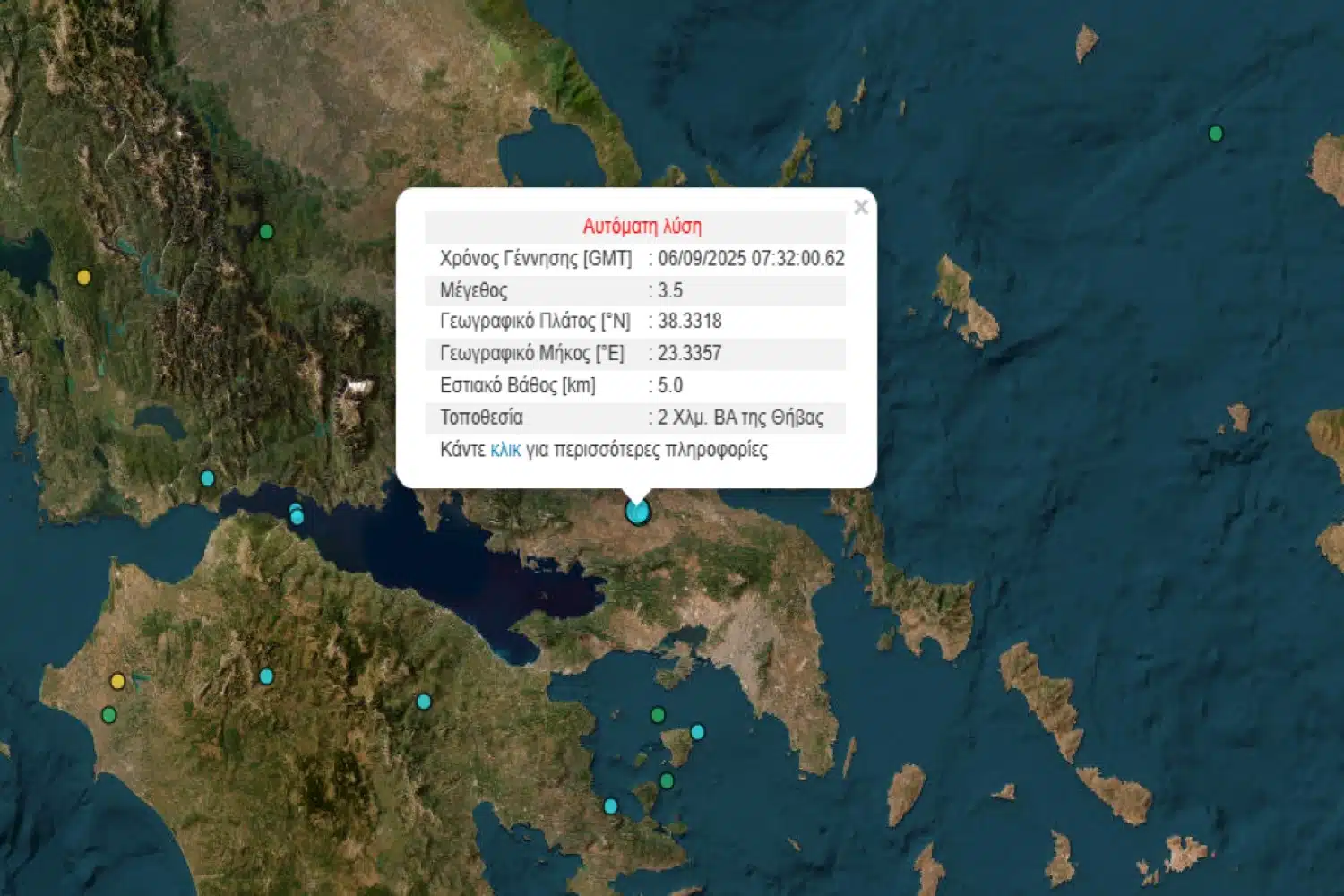 Σύμφωνα με τις πληροφορίες, ο σεισμός είχε εστιακό βάθος 5 χιλιόμετρα και το επίκεντρο εντοπίστηκε 2 χιλιόμετρα βορειοανατολικά της Θήβας.