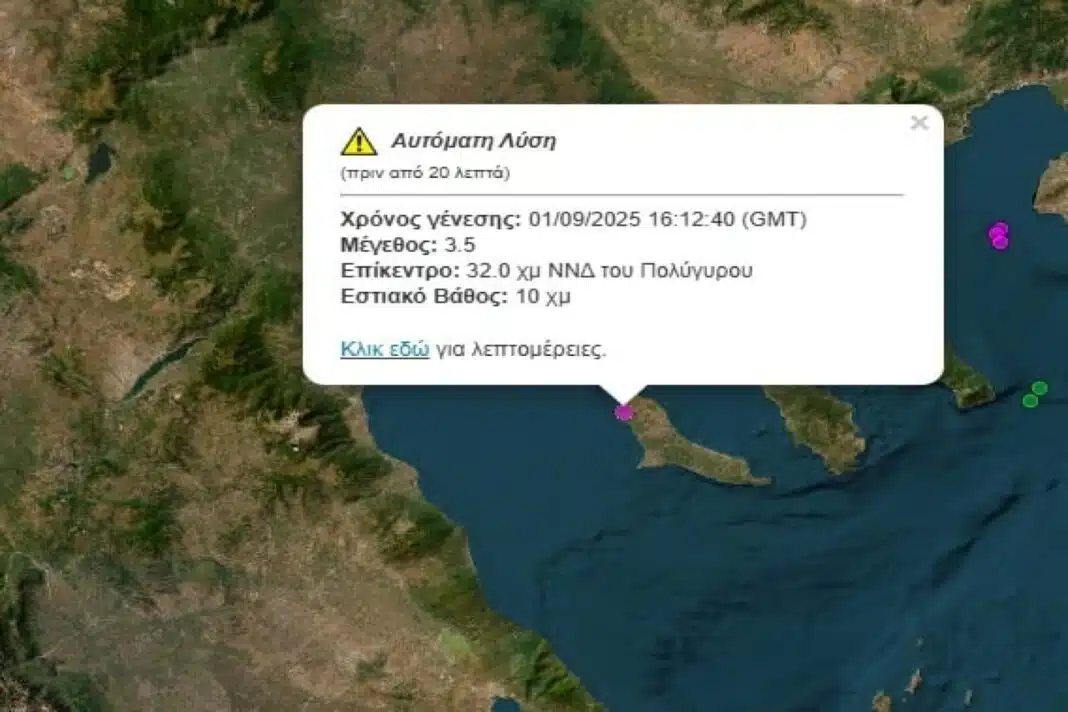 Σεισμός τώρα 3,5 Ρίχτερ στη Χαλκιδική