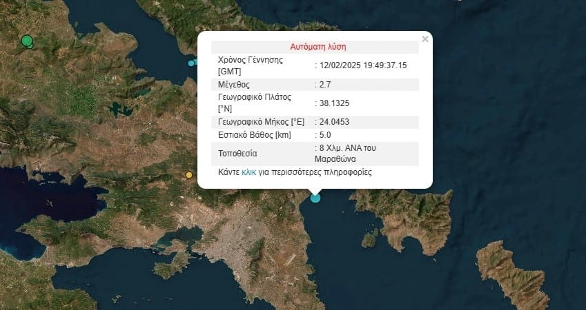 Σεισμός σημειώθηκε το βράδυ της Τετάρτης 12 Φεβρουαρίου, στον Μαραθώνα.