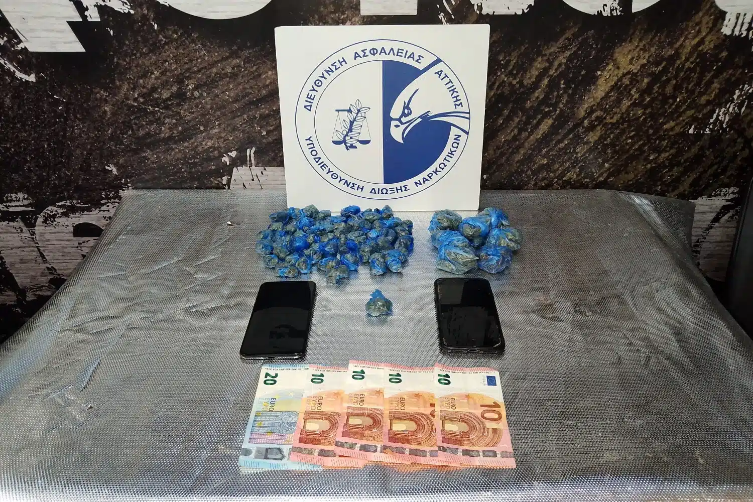 Στη συνέχεια, οι αστυνομικοί εντόπισαν τους -2- νεαρούς έξωθεν του εν λόγω σχολικού συγκροτήματος, όπου σε έρευνα που πραγματοποιήθηκε στην κατοχή τους, βρέθηκαν συνολικά και κατασχέθηκαν: