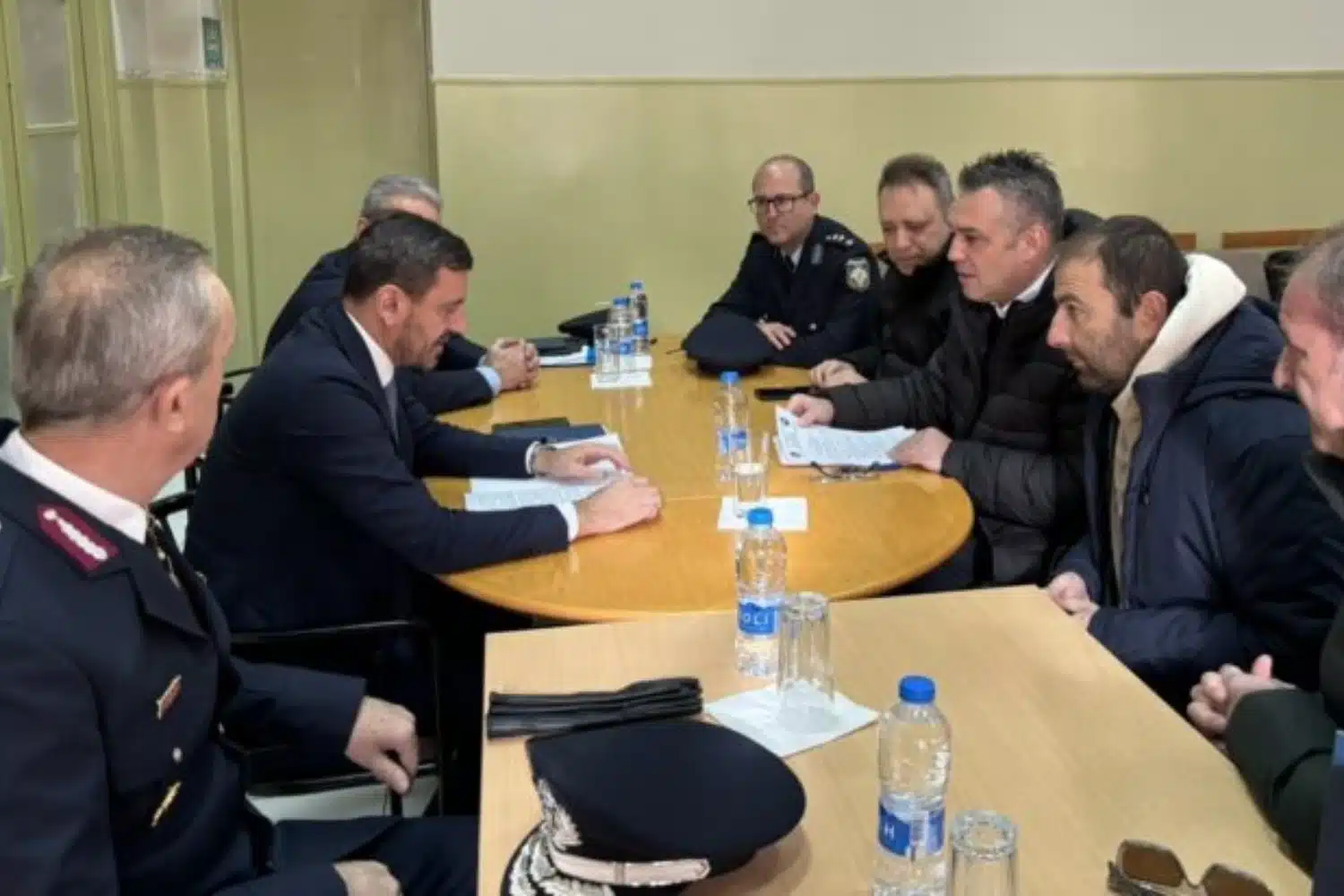 Ο κ. Νικολακόπουλος κατά τη διάρκεια της συνάντησης, που πραγματοποιήθηκε σε θερμό κλίμα, με τους εκπροσώπους των Σερραίων Αστυνομικών παρέλαβε υπόμνημα με κρίσιμα θέματα που απασχολούν το αστυνομικό προσωπικό της Δ.Α. Σερρών, επικεντρώνοντας κυρίως στην επιτακτική ανάγκη ενίσχυσης των Τμημάτων Μεταγωγών – Δικαστηρίων Σερρών και Αλλοδαπών της Υποδ/νσης Ασφάλειας Σερρών με καινούρια μεταγωγικά οχήματα και της αντικατάστασης των μοτοσικλετών του Τμήματος Τροχαίας Σερρών και της ομάδας ΔΙ.ΑΣ.