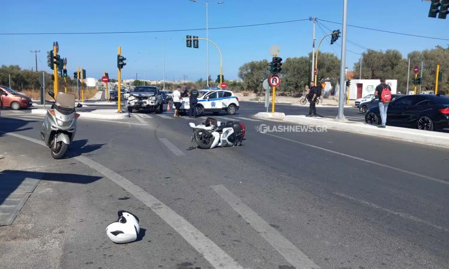 Σύμφωνα με το flashnews.gr στο σημείο των φωτεινών σηματοδοτών, ένα αγροτικό αυτοκίνητο συγκρούστηκε με μοτοσικλέτα – σκούτερ, κάτω από συνθήκες που ερευνώνται από το Τμήμα Τροχαίας στα Χανιά.