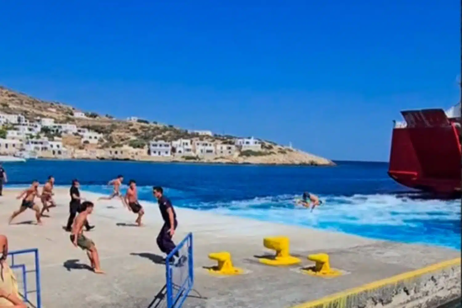 Σε αντίθεση με άλλες χρονιές, φέτος το σκηνικό διαφοροποιήθηκε, καθώς ένας άνδρας και μία γυναίκα από το Λιμενικό επιχείρησαν να αποτρέψουν τον κόσμο από το να βουτήξει, λόγω της αυξημένης επικινδυνότητας του εθίμου.
