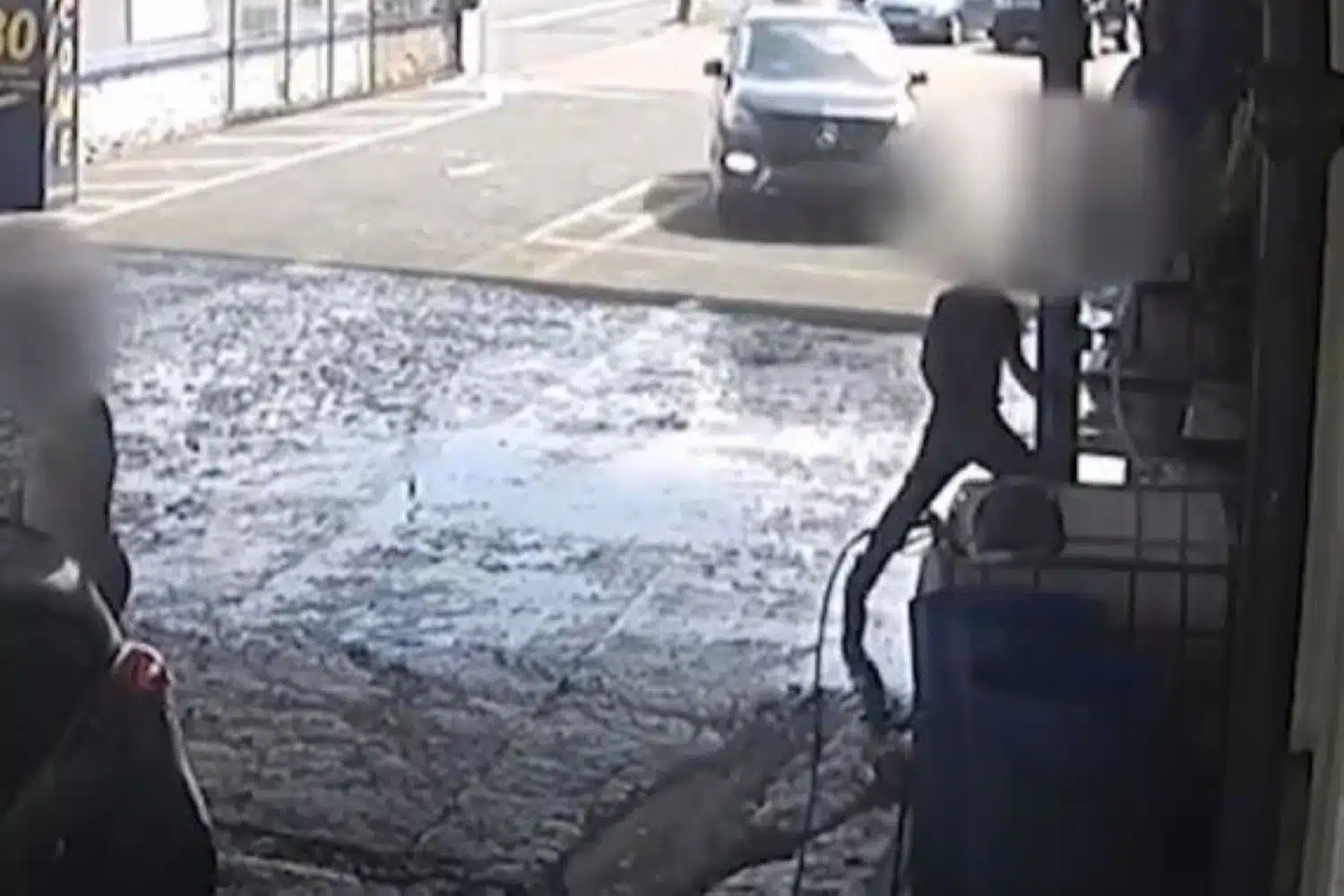 Όπως φαίνεται στο βίντεο που ακολουθεί ο οδηγός του μαύρου SUV πατά το γκάζι και προσπαθεί να χτυπήσει έναν άντρα που εργάζεται στο πλυντήριο αυτοκινήτων της Γλασκώβης, που είναι ο γιος του.