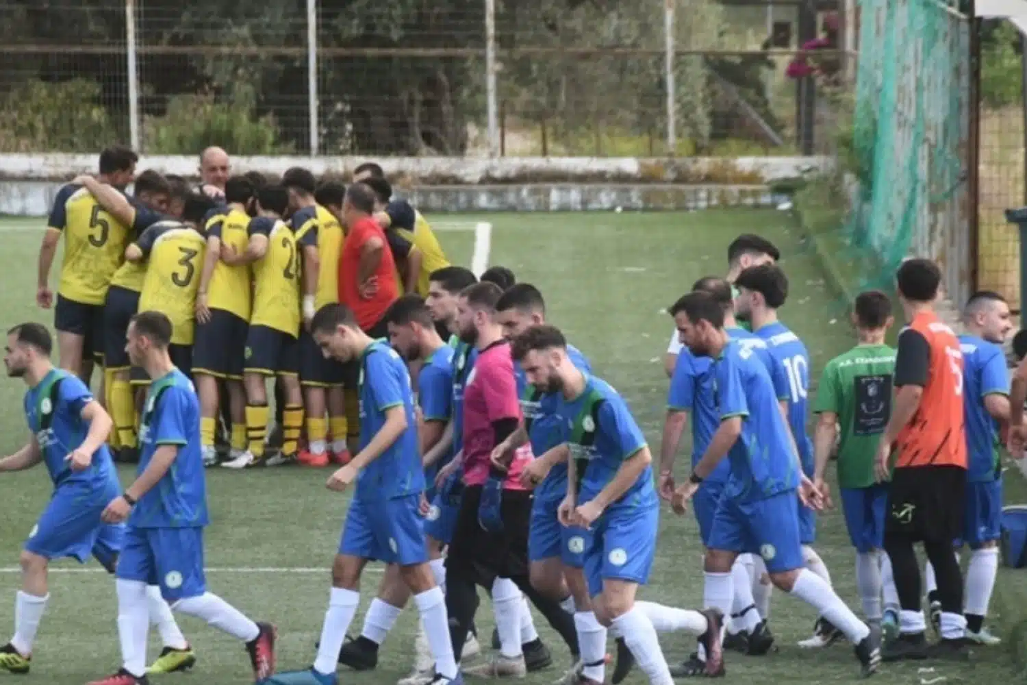 Σε εκείνο το σημείο έγινε εισβολή φιλάθλων στο γήπεδο με αποτέλεσμα οπαδός να χτυπήσει στο κεφάλι με δύο γροθιές ένας παίκτη της φιλοξενούμενης ομάδας, ο οποίος διακομίστηκε στο νοσοκομείο. Οταν μπήκαν ακόμα περισσότεροι μέσα στο γήπεδο, όσοι πρόλαβαν αποχώρησαν για τα αποδυτήρια με τον διαιτητή να διακόπτει οριστικά τον αγώνα.