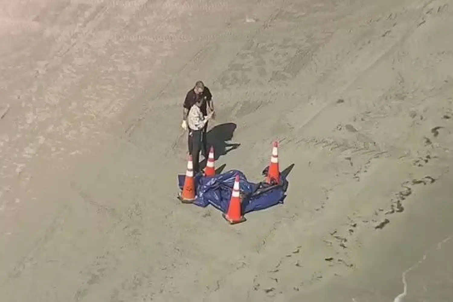 Εναέρια πλάνα έδειχναν αξιωματούχους στο σημείο να εξετάζουν τα λείψανα, τα οποία ήταν καλυμμένα με μπλε πανί και περιτριγυρισμένα από κώνους κυκλοφορίας.