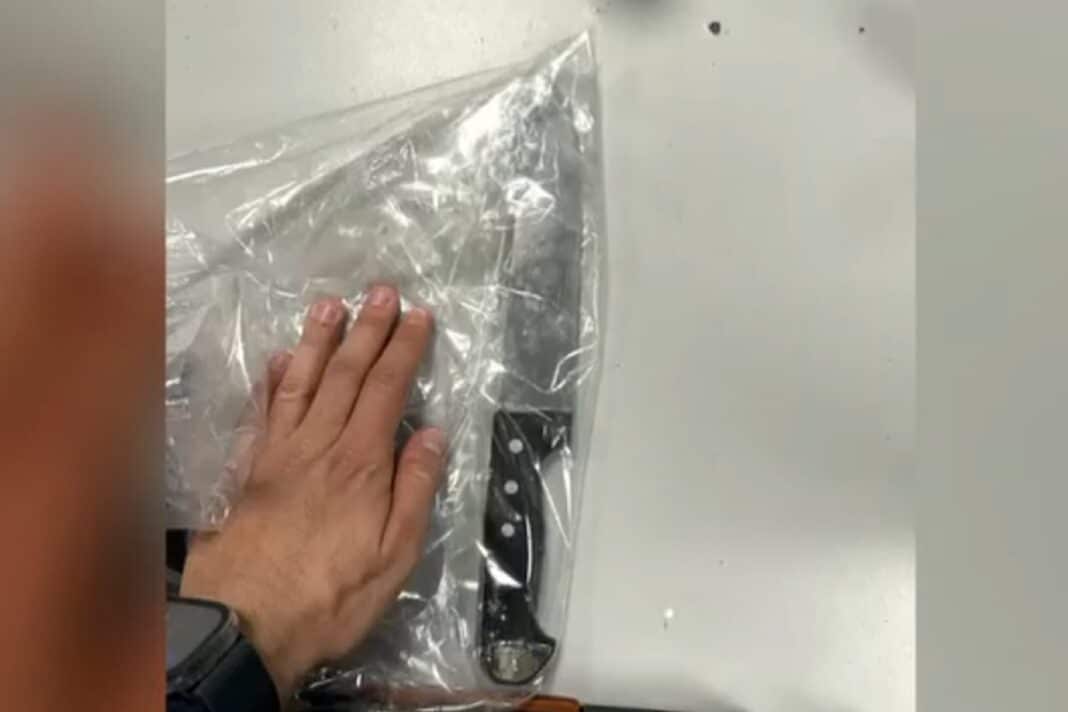 Μάλιστα χρειάστηκε να ενισχυθούν οι αστυνομικές δυνάμεις, καθώς ο άνδρας έστρεψε το μαχαίρι προς τους αστυνομικούς, πριν του περάσουν χειροπέδες.