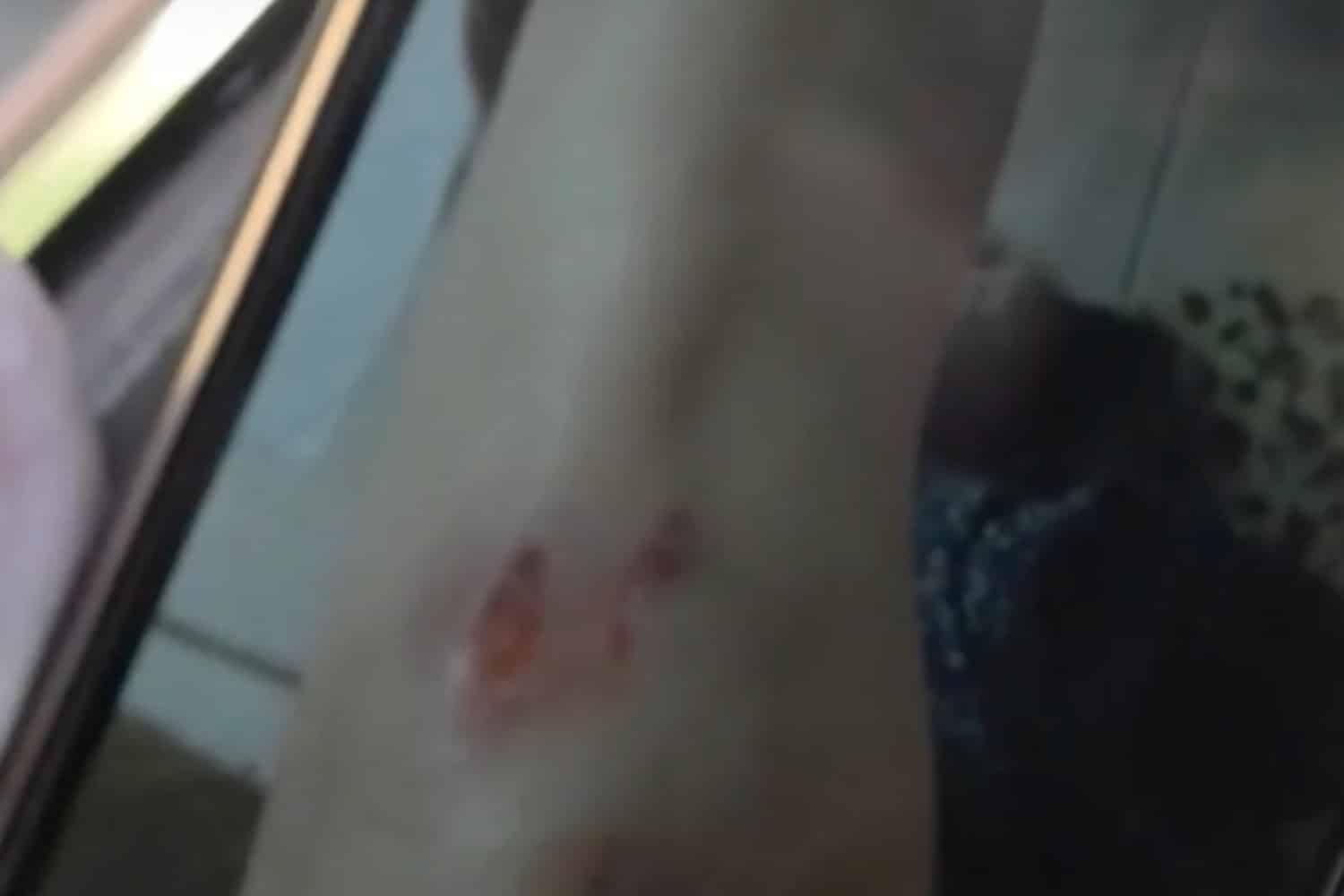 «Με έριξε αριστερά κάτω χτύπησα το πόδι, την λεκάνη, το χέρι και το κεφάλι. Μου έκανε αμυχές μέσα στο στόμα εδώ στο ούλο. Ευτυχώς που φορούσα ένα χοντρό μπουφάν διαφορετικά θα μας έτρωγε και τους δύο», δήλωσε το θύμα της επίθεσης στο MEGA.