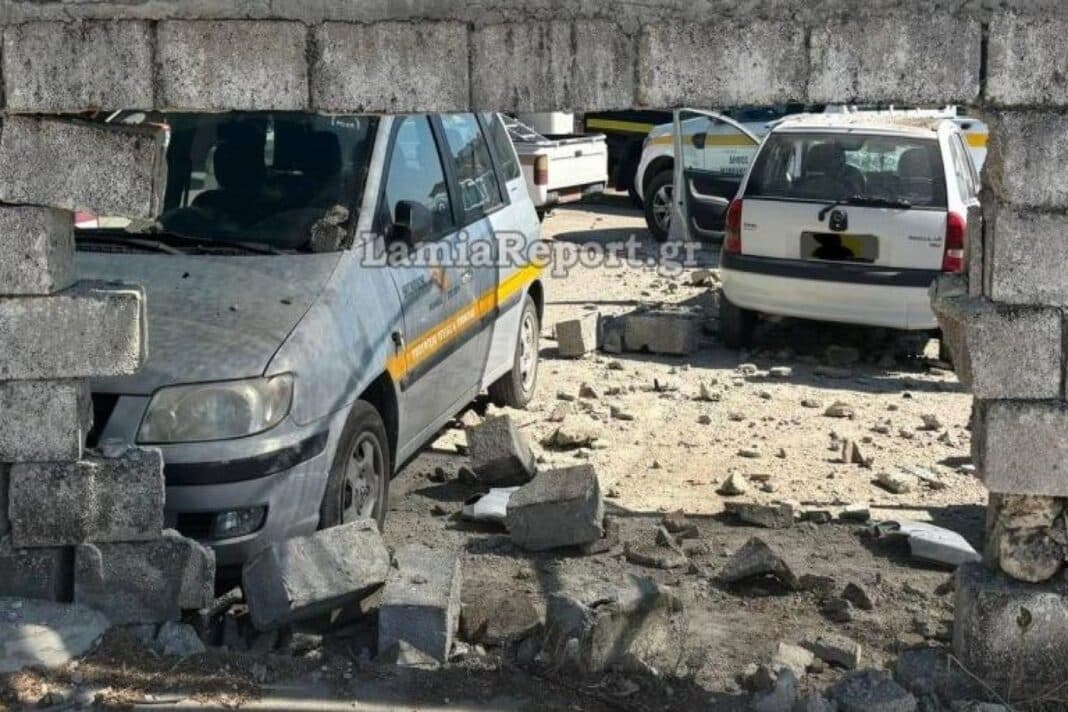 Το λευκό όχημα, με οδηγό κάτοικο της Σπερχειάδας, πέρασε μέσα από τον τοίχο, χωρίς ευτυχώς να τραυματιστεί!