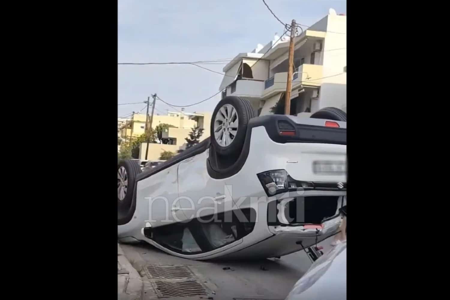 Ένα σοκαριστικό τροχαίο συνέβη το μεσημέρι του Σαββάτου (22/11) στο Ηράκλειο Κρήτης, όταν ένα αυτοκίνητο, υπό αδιευκρίνιστες μέχρι στιγμής συνθήκες, ανετράπη στη μέση του δρόμου.