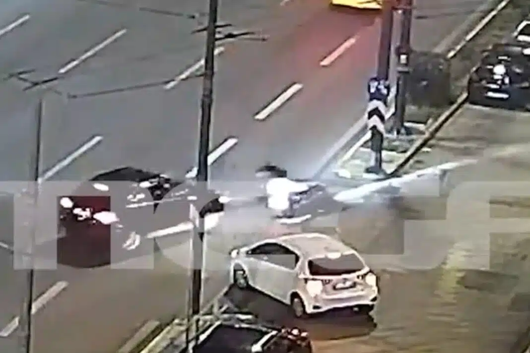 Σε βίντεο του MEGA, φαίνεται η στιγμή που δύο οχήματα, μία μοτοσικλέτα και ένα ΙΧ, κινούνται επί της Συγγρού.