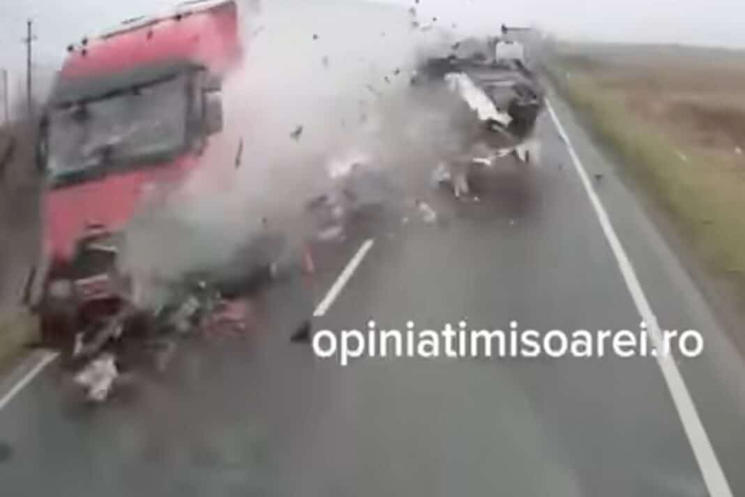 Στην προσπάθειά του να επιστρέψει στη λωρίδα του, ακούμπησε ένα βυτιοφόρο και στη συνέχεια συγκρούστηκε με ένα φορτηγό (TIR), το οποίο κινούνταν στο αντίθετο ρεύμα.