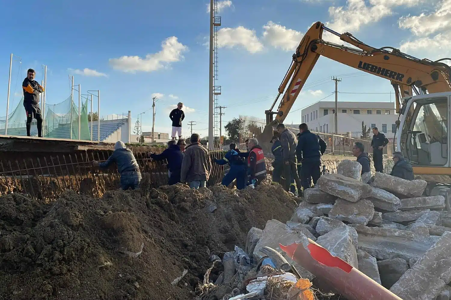 Ειδικότερα, σύμφωνα με πληροφορίες του cyclades24.gr, κατά τη διάρκεια εκτέλεσης των εργασιών, υποχώρησε κιγκλίδωμα με αποτέλεσμα δύο εργάτες να πέσουν από ύψος μέσα σε τάφρο και να εγκλωβιστούν.