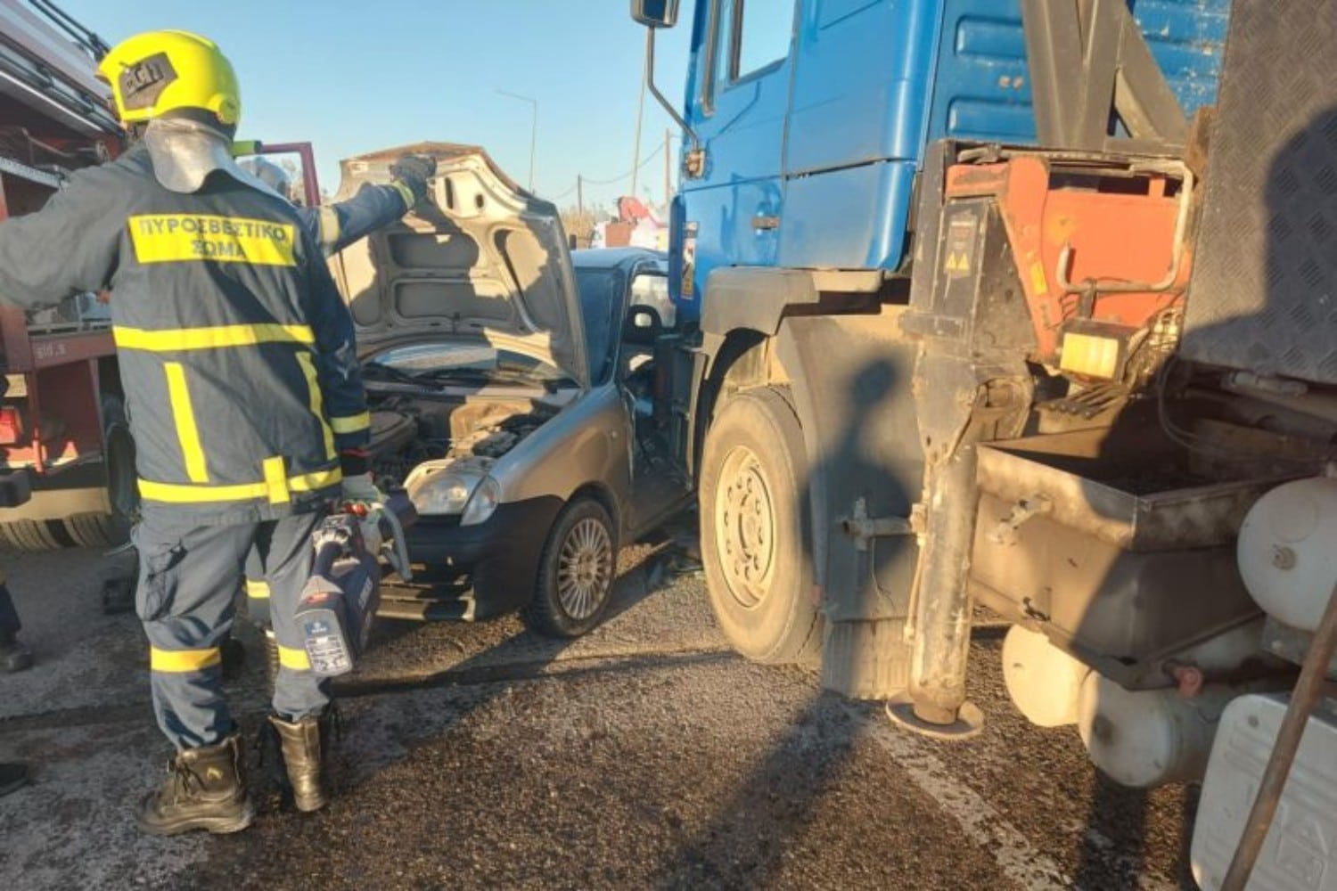 Από την πρόσκρουση, το δεύτερο όχημα κατέληξε να χτυπήσει και σε φορτηγό που περνούσε από το σημείο εκείνη τη στιγμή.