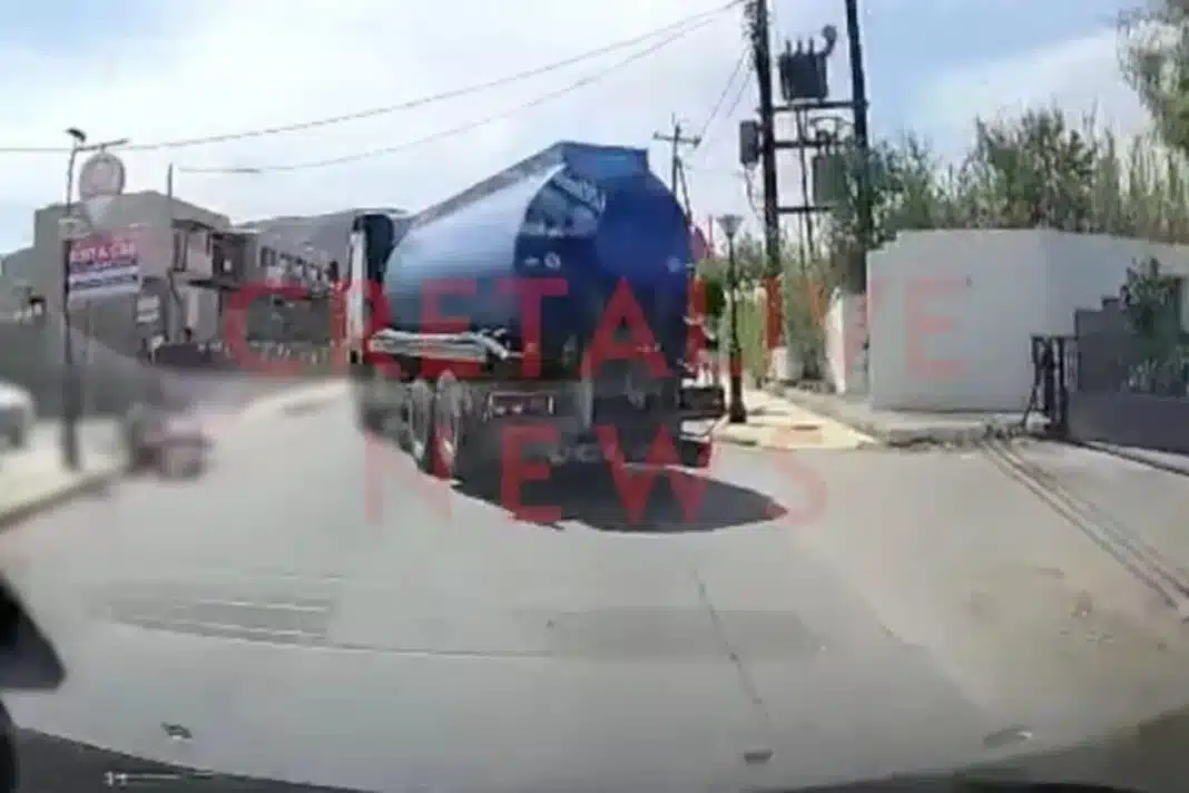 Όπως φαίνεται στο βίντεο που δημοσιεύει το Cretalive, ο οδηγός του βυτιοφόρου επιχειρεί να στρίψει αριστερά και από το αντίθετο ρεύμα έρχεται με ταχύτητα ο οδηγός της μοτοσυκλέτας.