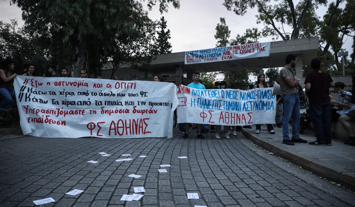 Συγκέντρωση φοιτητών κατά της Πανεπιστημιακής Αστυνομίας στην Πανεπιστημιούπολη του ΕΚΠΑ