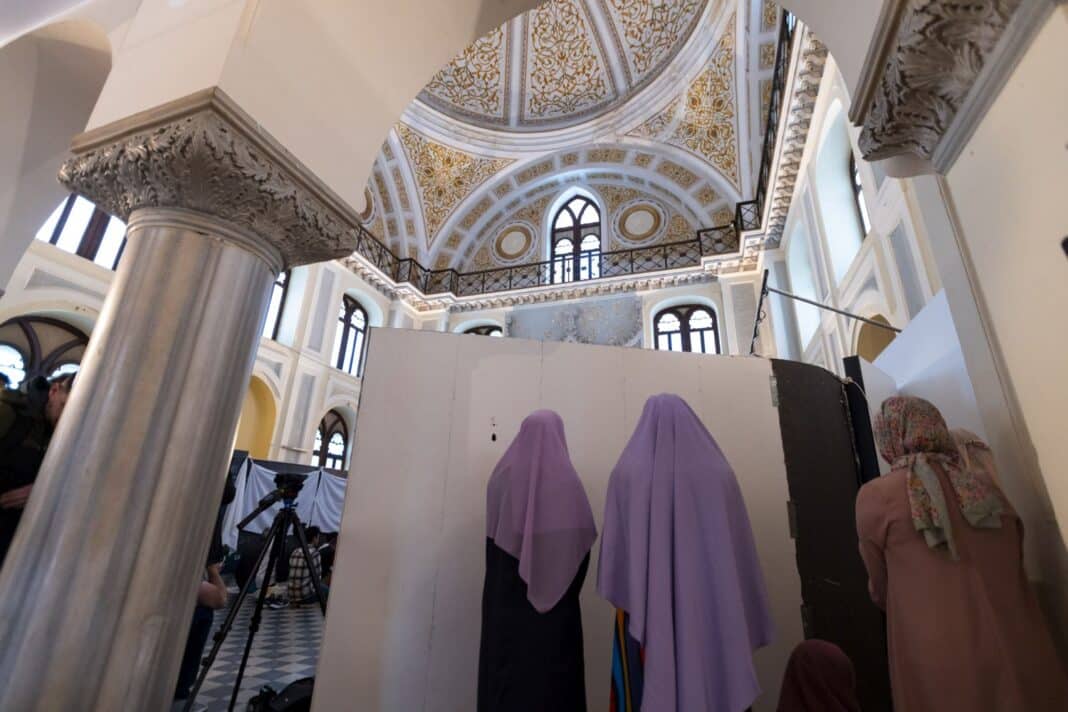 Οι δύο τουρίστες, ενώ βρίσκονταν στην εσωτερική αυλή του τεμένους, αντάλλαξαν ένα φιλί, γεγονός που προκάλεσε την έντονη αντίδραση παρευρισκόμενων πιστών. Αμέσως ειδοποιήθηκε η αστυνομία, η οποία συνέλαβε το ζευγάρι.