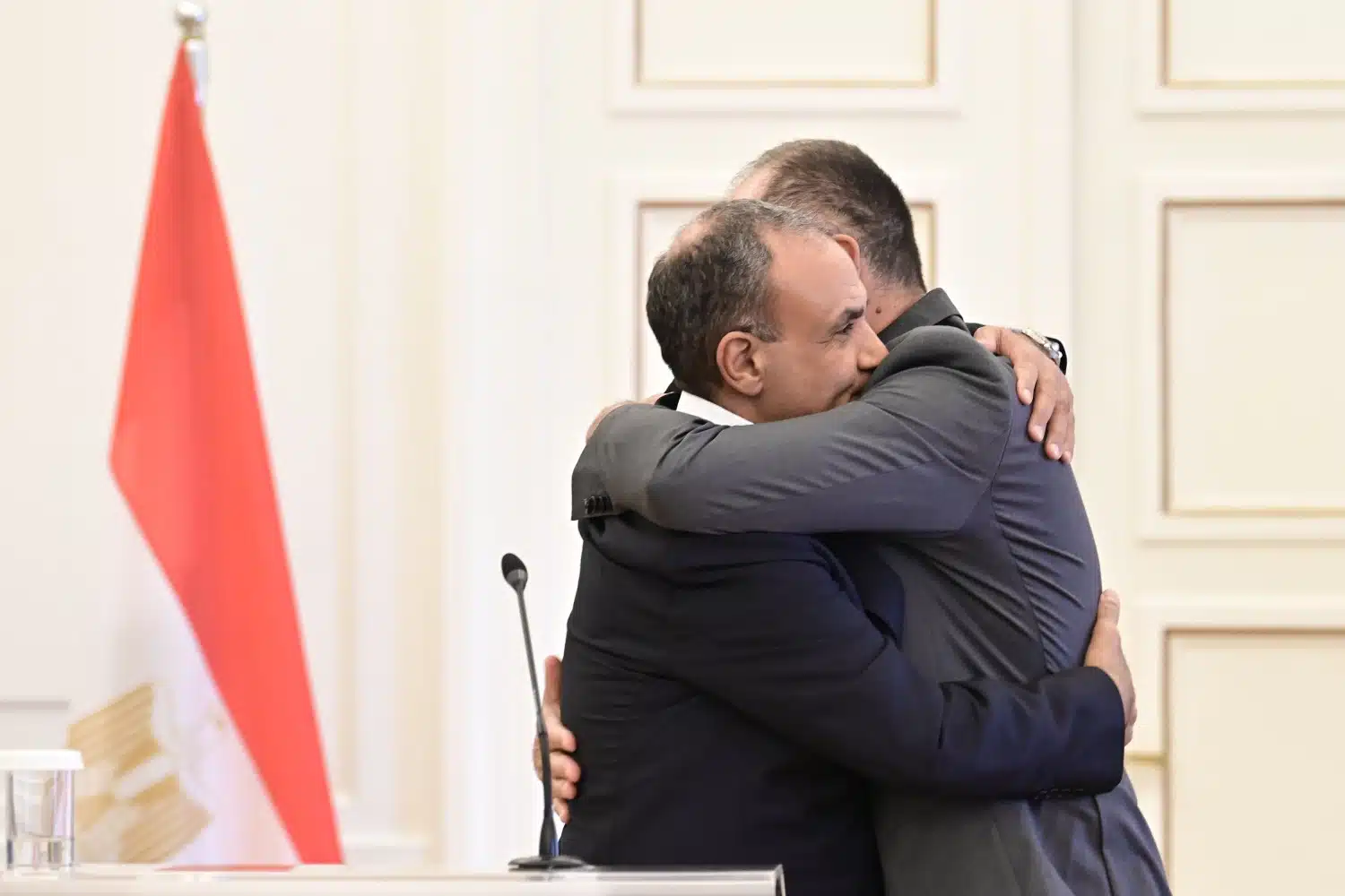 Στις δηλώσεις των δύο υπουργών προς τον Τύπο μετά τις διευρυμένες συνομιλίες μεταξύ των αντιπροσωπειών, ο κ. Γεραπετρίτης τόνισε, «με χαρά και τιμή καλωσορίζω σήμερα στο Ελληνικό Υπουργείο Εξωτερικών τον αγαπητό μου φίλο Υπουργό Εξωτερικών της Αραβικής Δημοκρατίας της Αιγύπτου, Μπαντρ Αμπντελάτι».