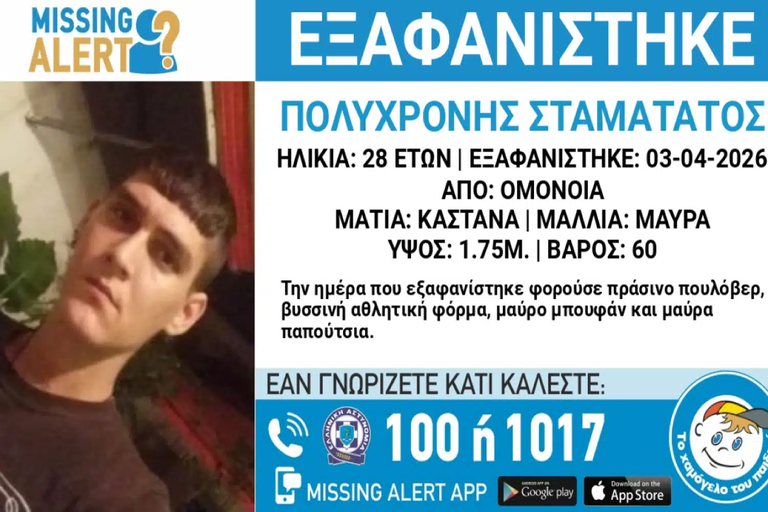 Συναγερμός σήμανε στις Αρχές για την εξαφάνιση 28χρονου από την Καισαριανή, ο οποίος αγνοείται από την Παρασκευή 3 Απριλίου.