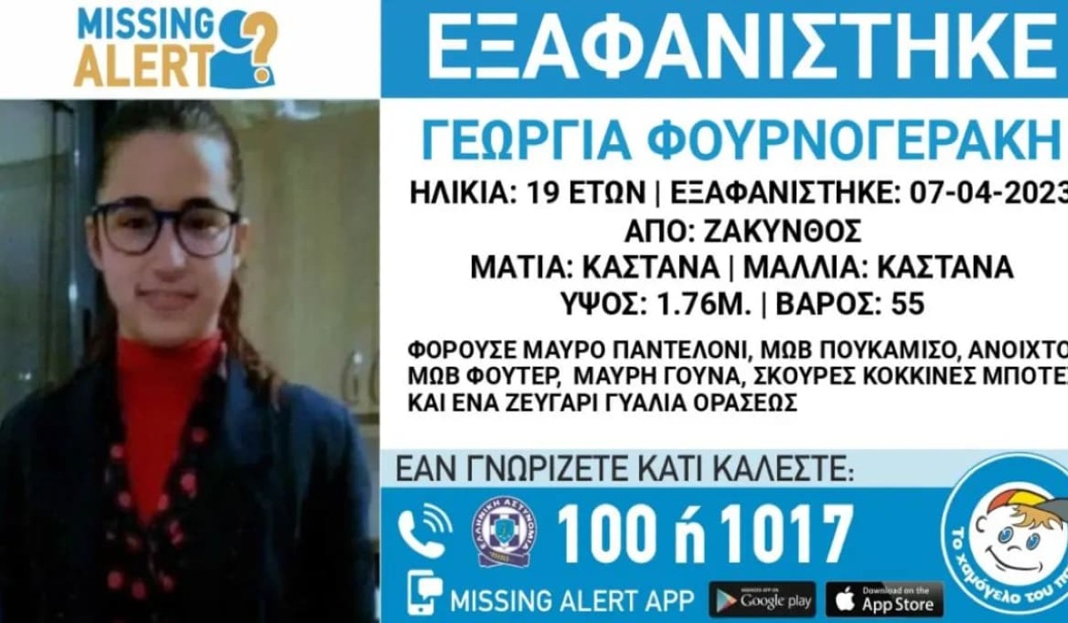 Συναγερμός σήμανε στη Ζάκυνθο για την εξαφάνιση της Γεωργίας Φουρνογεράκη, 19 ετών.