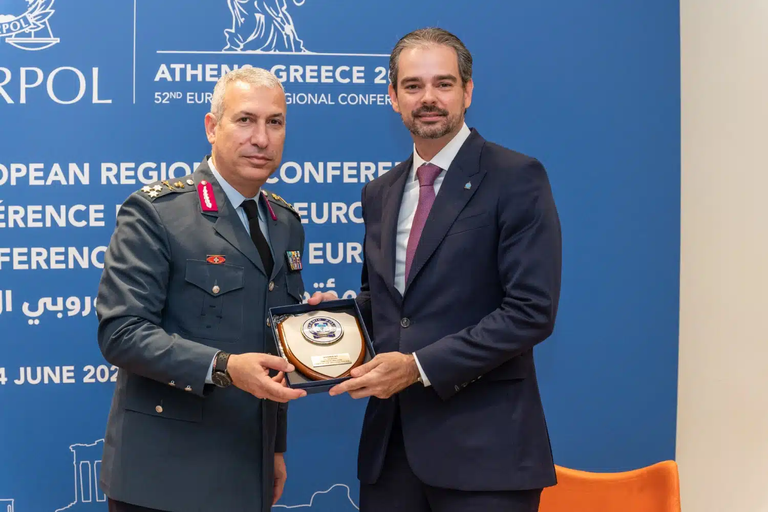 Ο Αρχηγός της Ελληνικής Αστυνομίας, Αντιστράτηγος Δημήτριος Μάλλιος συναντήθηκε με τον Γενικό Γραμματέα της INTERPOL, κ. Valdecy Urquiza στο πλαίσιο του 52ου Ετήσιου Ευρωπαϊκού Περιφερειακού Συνεδρίου της INTERPOL, το οποίο φιλοξενήθηκε στην Αθήνα από τις 2 έως τις 4 Ιουνίου 2025.
