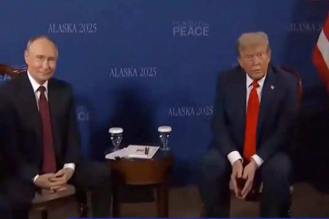 Ύστερα από σχεδόν τρεις ώρες συνομιλιών στην αεροπορική βάση Έλμεντορφ-Ρίτσαρντσον κοντά στο Άνκορατζ της Αλάσκας και μετά από την ανατροπή στο πρόγραμμα, οι δύο ηγέτες παραχώρησαν κοινή συνέντευξη Τύπου.