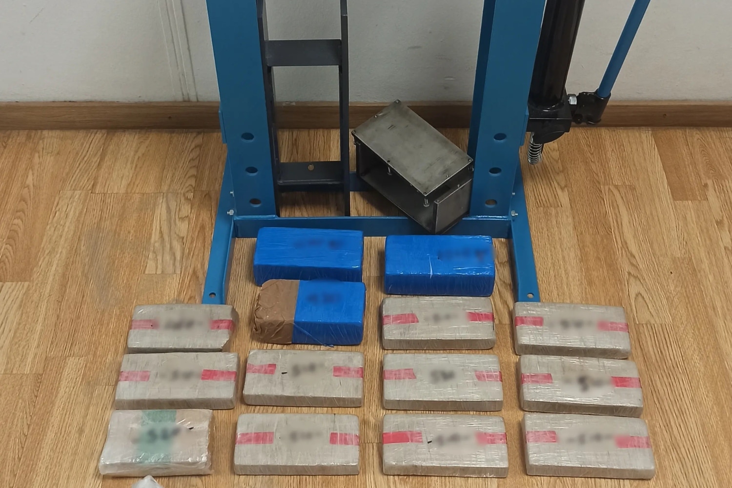 Κατά την επιχείρηση εντοπίστηκαν και κατασχέθηκαν περισσότερα από 8,8 κιλά ηρωίνης, υδραυλική πρέσα, καθώς και 420 γραμμάρια ουσίας που χρησιμοποιούνταν για τη νόθευση της ηρωίνης.