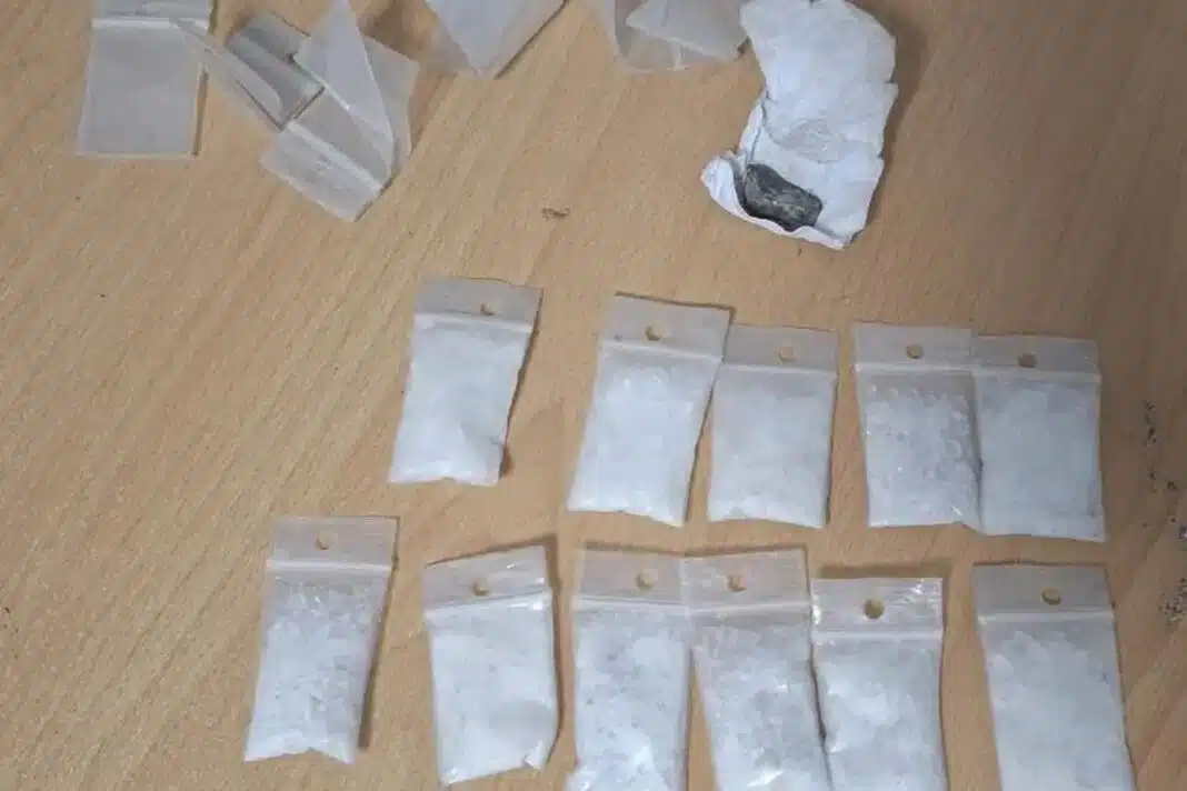 Κατά τη διάρκεια του ελέγχου, οι αστυνομικοί εντόπισαν στην κατοχή του και κατέσχεσαν -11- νάιλον συσκευασίες που περιείχαν συνολικά 87,5 γραμμάρια κρυσταλλικής μεθαμφεταμίνης, καθώς και μικροποσότητα ηρωίνης.