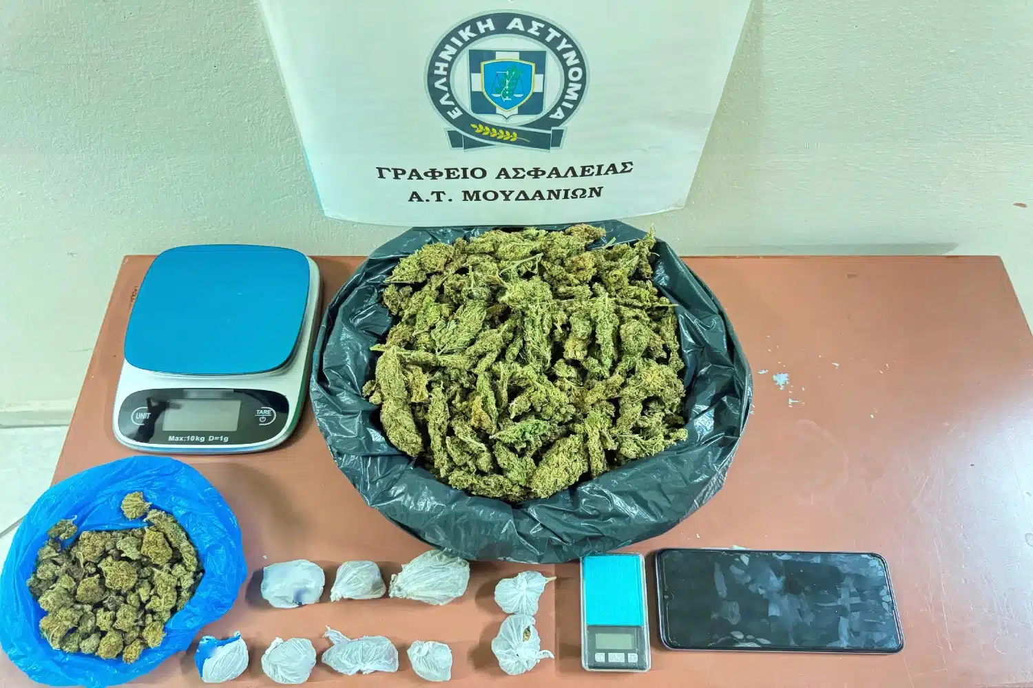 Εντοπίστηκε την Τρίτη (15/7) το απόγευμα, σε περιοχή της Θεσσαλονίκης, από αστυνομικούς του Αστυνομικού Τμήματος Μουδανιών, ένας ημεδαπός άνδρας και σε έρευνα που έγινε στην οικία του βρέθηκαν και κατασχέθηκαν 11 συσκευασίες με ακατέργαστη κάνναβη, συνολικού βάρους 470,8 γραμμαρίων και 2 ηλεκτρονικές ζυγαριές ακριβείας.
