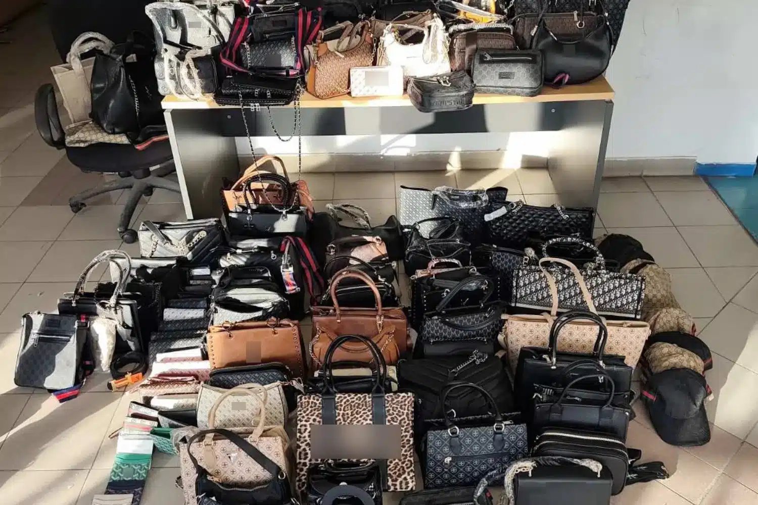 Βρέθηκαν συνολικά και κατασχέθηκαν πλήθος απομιμητικών προϊόντων και συγκεκριμένα, 74 τσάντες, 32 πορτοφόλια, 34 ζώνες και 6 καπέλα.