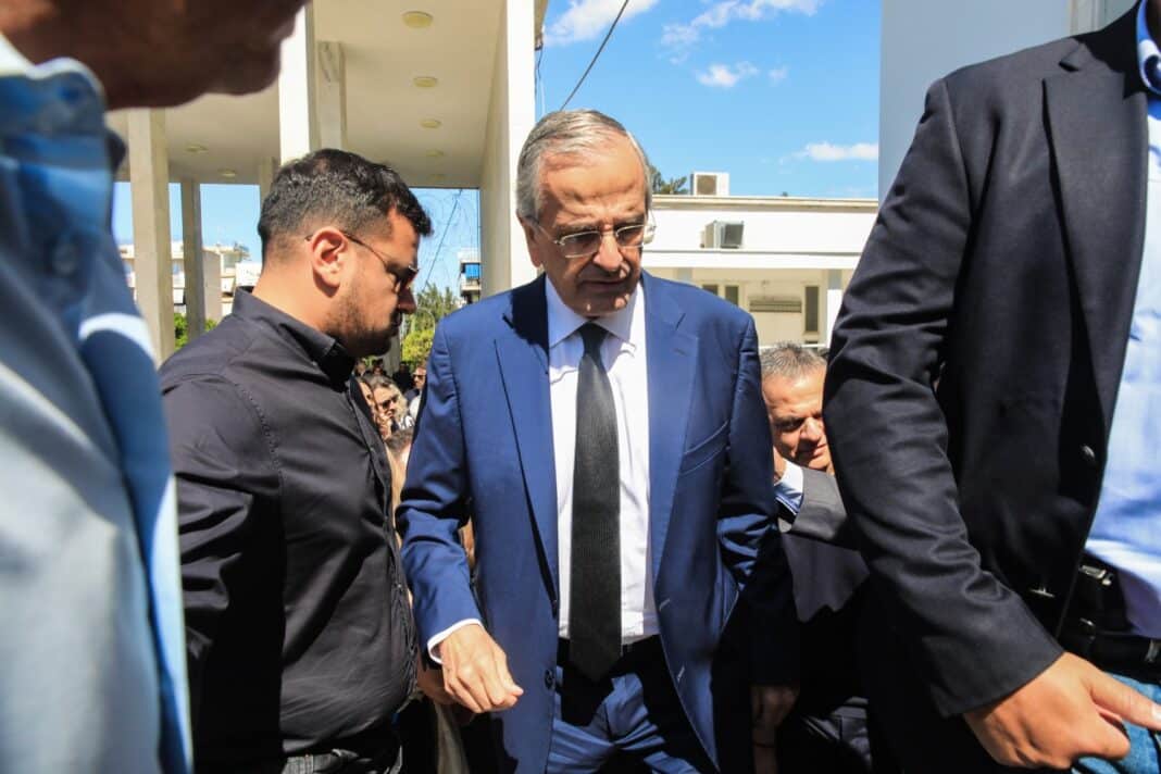 Ο Αντώνης Σαμαράς και η σύζυγός του, Γεωργία, έφτασαν νωρίτερα στην εκκλησία των Αγίων Θεοδώρων με τη θλίψη τους, όπως είναι φυσικό, να είναι φανερή.