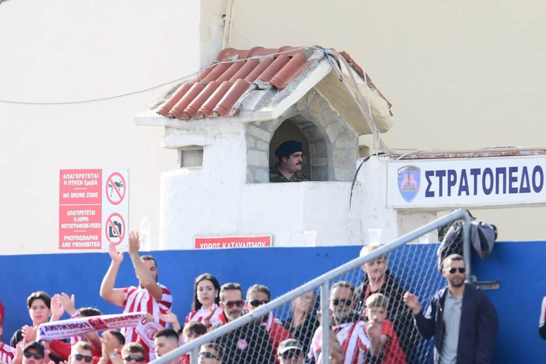 Το γήπεδο βρίσκεται δίπλα σε στρατόπεδο, γεγονός που έδωσε σε έναν στρατιώτη την ευκαιρία να παρακολουθήσει τον αγώνα από το φυλάκιο της σκοπιάς του.